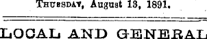 Thursday, August 13, 1891. LOCAL AND GENERAL