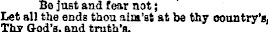 Be just and fear not; Let all the ends thou aim’st at be thy country’s, Thy God’s, and truth’s.