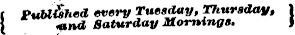 t PaWtibea every Tuesday, 'Hmrsday, > | ssnd Saturday Homings. f