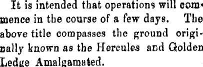 Ifc is intended that operations will com* mence in the course of a few days. Tbe above title compasses the ground originally known as the Hercules and Golden Ledge Amalgamated.