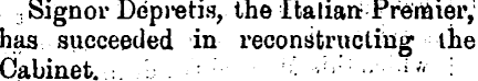 ; Signor Depretis, the Italian; Premier, 1 has succeeded m reconstructing ihe Cabinet. :. .'■..-. • • ; ' : • ■" :
