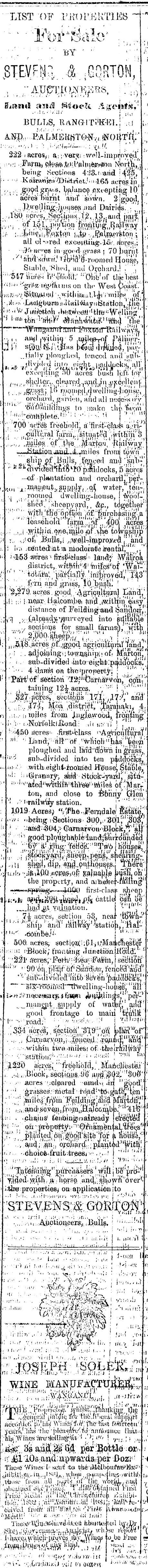 LIST OF PitORKKIIES ~ $TWU ,.& .GORTON, BULLS, RANG-ITi'K^l.; ...i AlSp,,- P/ALMEI{HTO:Nv/. fNOijT'rf; " !•.•■':•. '•■■•<. i: ': J.-'/M^V— •; : !1 1 " 222 i acres, < a.; : van?: -, \vp)l- im proved' . being .Sections 4:33.r :arid i^S.' • ■ : KairAtt'#:^i^riet.->.l<>s ai.Te.sap .,.... g.<iod gr^.s, balance .excepting 10.' ' ' acres Vuriit and 1 sown. 2 igbod, : , ,, pAyeljlin^.^ujsep : :md Dairies. ■'[[ ,180 s:civs, Sections^?, 13..and iVaVfc' iV ,.. pi l;^Lj?o>tion fiftntuig.^njilway ;/. ;. i ;Lin\),"'; ! F,o t^on'"i M tp • ' all 01-.ired exctnitii*gvlS/. sici-es,; • ri-t tic»es in-good-s^'ass • 70 burnt • 7 < fihil'^ivir.' FJous, Stable, Shed, and Oychard.i ." , •'"•'s47 yut& lV'tifi'om:' }!: o'iib'of tlijeliesf. ..■.'.';.»» ; ' : grVSK ir'g>fiunis on the West Coast." ■»«j;-.-r; i^ifl^U^J '.-.^yUJiH'Miil.l^i't'milpsf of^ ■ . >li ■'.•• 'L«iii>bum) a tß'ail&ay •- 1 Bra tioti J-jtiie ■ ' ! .". . i W Jutitetloh . h<jß.W(i<j« ■' fch'e^Wtf 1 lin«' ' .. ti« I S v ploughed, tonccd anirsVl'Tw' exooptiug o() acres bush loft, fni.^ orduivd, gMnion, and uli nedess ir'v" 'oVilfi'i'nildini/s to irmko ihe 'fH>;m' ■ 1 1 :' : =■-•■• ■* I " i ; 11 "' ;'. ! 7p6 ; !i(^s ff^lioia^ a'firat-dlfi^ %:n^ ', _", j|( cu|ii;val J siti|ijiit"d ' J ;vvith*rji'"^ t . -~Jiiatioa-irU<l»i : ,«miles froraj town", ship of .Bulls, .t'mced ami'SjiVV-' •" * Bfc <liVicte^fiffi t lK)'ipiiadookß, p aurqs' —of- plantation and orcliariilj'per- .. , roQined dwclHiig-iiouse, I ■vVoo!'-, sl'iecl^'slieepynrd, , &p., tcigetiier' !;i! " '" iv'itli 'th'e' : Bp'fu>n .of :i lJurob|»siii'ff.!a ! leasehold fur,m. ,-af „ 40ft acres' T .. -. ;! ot'i .Bulls, ( v ;wellii'mproyA J i j ' ' and : !. a .tentecfc iat ;a niodoiafe arental.' w '' , . ' >453 acres 'firs&classi- land*' ;Waifpa .district,. wttftfii^ feiffis'bf 'Wai-' _"' ' " >: taUi^/p^ia^, 'inij^ye^^i^S'' '"./; , ,fri'4 and grcisi, lObiV^liJ '. ' ', . '2,279. acr.es. good. Land,' ,!; :: i ! Beariiaicomhei Hnd.iWi thin easy' distance of Feilfling-aad banc\oir, f i ,T| v ,( i ali:eadx^urvGyed into srfjtak'ie' sections for small tannsn, "wilb . .( 5,18. .acres p'f. ,<gp.od a'gTj.qjjl£\iml' Tand , ! ' ■; ; . ftdjoiyingi ; tp-wflaliipi > ooff f Mfartonj * :■ . ■ sub-divided -into eighfcjpaddpclis!' ' ••■ 4 itlattte on the 'prapertyi ; lil> ' *' ; Part K 6f f j&'ctioti coC^ t tiiining 12^ acres. / A '""' : i ..^""" !! /" i: .::,!'l47|j l\Joa. 4. !,.-■, n,ij jes i'rom jLiigiwobii, froniing' »■;}•• i-Noi'lelklfioodl.: >i. uu-ii \ T'^ '; : " jicres 1 ' .firgtAblass 'lAgiiicul't^jfai I ,' ;) • ' : L':i ndy ■air" of . ' wlncli (>( hk ; _ '^ei'p ! ploughed, and I&'id^owh m grass,. ; "^ sub-divided into ten piddoclcsV : m- / witbei^li^rooined . H'Snsel •'•'■" iiiifiri'sußiry-, aii^'-Btdck>yaiKl^'s^tti-' J! ' l|iO^ed i Wh^ttHhVW--«iAile^f!jlar 1 : 4 1 ton, and close to fibiiny' Crien ' ''! '■''rmlw'aly station. i. •'!'..-.• 1.019 Acres; t state/' - • w * ' .being .Seetioris- 300^;- SOlj 1 1: M, -I < .;aii<J:3o4;s (DamarTOn''Bioelc.Tali' •';■■ •!'"-' gdodploiijo-hahi^dund'^urpunded r, 1 " ' 'bf ai % •Miae': : ' :i TiV6 j ti-ou'seg/ - \ U StiSH » *mPj : •<*?s•. 9 l W u^, s -i A? 6^"! •ti.ih> •/iJ6-il.ftO-,«Plßft^>Qfj Jiajua^ie busli. o;h' : , the property, and aj'nefeef-Mling' 1 «-*«««iij«y4+gv---.4JI)jU) first-clfißS ifc%l« aj}4i^^ik^»i>A cattld |^ b' c " kad^t .valuation. -.'I' I '^-- -7^ aorca, section bo, near '-MSWh-* I - K «hip ; ancl ! "••" : .66ihbe'}i> \ "'•*"' 500. acies; sectipeiiipl-jt/MailK^jest^r • ' ii: '•Bkxsk; fiifoß-tiiig Jun«iibn]H<Kidl" '' ■ ' 221' stems; • Fei i h ! ■ f seUtiStt ' ; ; '" ' ; 90 oti . jil'd jf ■ qf ; StJiliciyir,- f enc^' ! aii ; d v ' ■- ' siib'-di vuVe A 'mt6 ' ■*""' "" BiS"-1i l o"6in*cl:l**T:lVelling-ho|t«e i ? ' "all «>>*^'n^ceHsaifj; j fjiiwi .^nuui^nt supply of watfer^ailii' good frontage to main tttfiltt " ' !" - ! .r(Wd;' ■■;:«^:.wf .'••,.::■' J ''jir.:.,i,i . ;'3s4 acros,, I .;^^ b^V , .... ., Qi^riiavy.oii,; .,|eiic.^d,:'?.^Dt| : j cl a v n ( 4 i , :.--:witihin ■twe..mil«S! oftbeiraiHvUy" ■;■■■ •'■' "sttftibiy;''- .';-" : : ' '' -' {- ' 4 ; - >:i:: 7 ! '' lyH li *' ViSSJO a^ros; ; ''fri3eliold,',liLinc i libste.t'' ",.' ..a : ) ,'.Biock 1 j rsecii.qi!s..9'6' i\n^M^'^{)&' ■•■•■.>>■■ acres Mclpared «and-.i Ati "gbpd 1 / ; ;■' grasses/ nietal'ivind^^gjat^'ien 1 ; ! '.;;.; 1 jVfa'Hdif/ r ; ; , ; .v,and!. sc.yQn , pro nijfit.al co.Bf^ b la/" 4 liff " J ■'•!: . .chajins 1 fenlt>mgiijair.eady [er^da "; -'•■•; oil" property : <r " !; €>^hb'm^aL^fe<,'s' 8 , '[£",'' Jl^ilted^i^pQir^tfe'^r ibMUh,'- --■ '..'r^idi^u'j orpjiiircf.'j'piaftted-' 1^!^!. !(■;.-..- -.choicfr.lruit-.fcreesj ■-•■..•,.' I " liil '!"' ; , ;; (^fe^d^ l! j»ii*e^OT6 : j \f itl j bj^ ? j)rb^ ! y.ifletl >v ; ijtfi, ]a ; hprs^ .'an^l-sliown'over^ i-tlrer. proper fcies/ on application ;to ...,;,.'.,;. AUefcioneersv', Bulls. \ -■— -"'^ "ii^L '■;-■-; ■■!!"■-■■<•'■ --m--;-...» ; 4M — ■■ :rnvi ?-!■!• .--ir^ ,ih .. . ; : !•;-.;; j ■•?':--;?-f '."■..■, "■.; I ' ) . '" ■''''•. %^X* J< -"' :; : ■. jl '- i; ' v \ i i 1 ''■•"••■" -'.•'■ -^7^^-i 1..'I ..'V | '.' I ; ) ■ ;: :-t .. . ; ip^^#^; •»•<:'■■=■•" . : ■■■■<■ is;*- .. ■'* ■-^%^!j|y^ r ! ii' -i' .-m. : -m.-." ; ..■;-; ;:-:: ■.-.(>». L . ( ;.,... . j ..„;..... .; :li-: '< ■:,.■.- -V I --if* '■.>■ . 'j i-i- -, ' • r' WINE ., MAN)JFiCTtJ]|fej^!^ "M : r> 7^ist: jihkiik^i v t^" JL' ■;. : -<ieit'pr;i ! ri_)rtT)Jif; fdit!i6'Ji T )t;nU support . yoaV^/.'lins "the ■j>l6iisAfo/'t'u\anni>uiicu tluwd ■.hi^'Wiiics'aij-e^dln^fat >! •' ) [ LH - ? r!J ,; • .-,,_,' J ,ii^;. 3^ a43J 5.4 per Rattle or.- . i- 163 ; an ! cl;.iipwaTds;! : j)er BosriTlic.h6 Wines [• sent' to tfae'jM6lbputfwe*}£x^i < Jii!;.