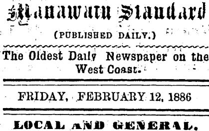 Manawatu Standard (PUBLISHED DAILY.) The Oldest Daily Newspaper on the West Coast. FRIDAY, FEBRUARY 12, 1886