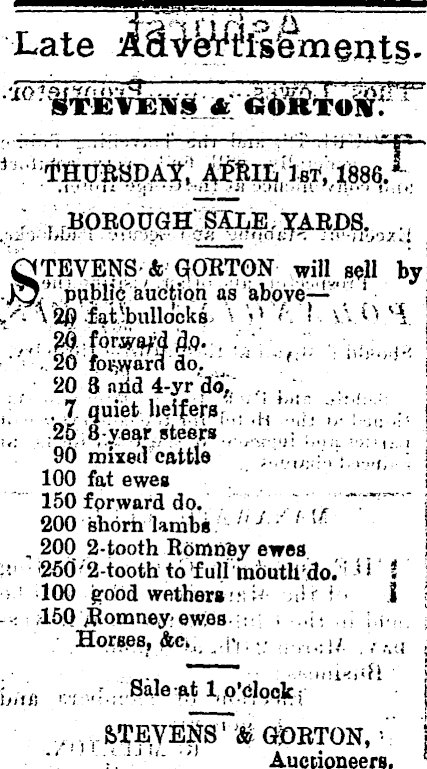 QTEYENS& ;G(.OBTpN will sell by! .O^ hi jjpbiie'auc'fcioh as 'aboye— " ' ' 1 \, ; M : fqw«;a^dJfl..,; ,: ■ .- | ' .. 20 forward do. -■■-'• >• • . | 20 8 ajia 4-yr'do> ... . , I | .. .2.5; 8 -year steers.,. ...;..„; . .. ..." , 1 ": 90 raised cattle 'V^C'.,^.'.,.':-. I 100 fat eweg . I 150 fprward do. . ." ', ."•";""""•" ; 200 sborhiambi: '•"'■'■' ' r lf[ \ , 200 2-tooth Eomnfey ewes i :: 250/2-tooth to f all mouth do. ; -U '%' •> ■ 100 gobd wether* <.r.U s iM . I j, .- 150 ißomney- ewes ; ..■; ..; ;* Ji • Horses, Ack^ ..■......,,. 1 ;. . it{ ,J L-iil rT-^^Sale-a^eloekf ■ j .^.^TEyEijS'^GbRTON, ••' j ." V; 1 '"" ' Auctioneers, '