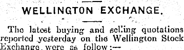 WELLINGTON EXCHANGE, The latest buying and selling quotations reported yesterday on the Wellington Stock Exchange were ae follow: