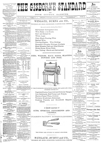 - ARTICLEThe Gisborne Standard AND COOK COUNTY GAZETTE Published every Tuesday, Thursday, and Saturday Morning. Saturday, Janu...