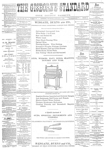 - ARTICLEThe Gisborne Standard AND COOK COUNTY GAZETTE Published every Tuesday, Thursday, and Saturday Morning. Thursday, Janu...