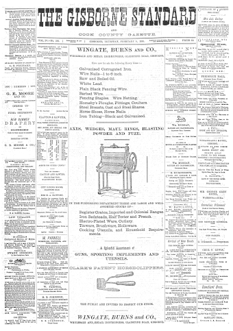 - ARTICLEThe Gisborne Standard AND COOK COUNTY GAZZETTE. Published every Tuesday, Thursday, and Saturday Morning. Thursday, Fe...