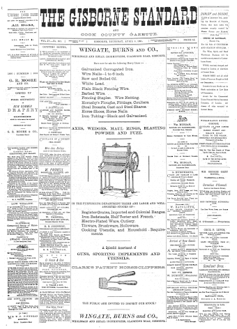 - ARTICLEThe Gisborne Standard AND COOK COUNTY GAZETTE Published every Tuesday, Thursday, and Saturday Morning. Thursday, Apri...