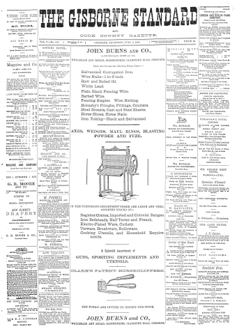 - ARTICLEThe Gisborne Standard AND COOK COUNTY GAZETTE Published every Tuesday, Thursday, and Saturday Morning. Thursday, July...