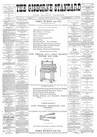 - ARTICLEThe Gisborne Standard AND COOK COUNTY GAZETTE Published every Tuesday, Thursday, and Saturday Morning. Saturday, Augu...