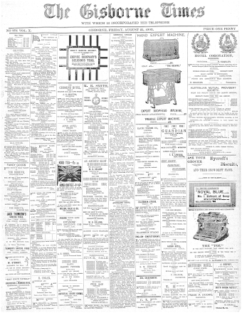- ARTICLEThe Gisborne Times PUBLISHED EVERY MORNING. GISBORNE, AUGUST 21, 1903.