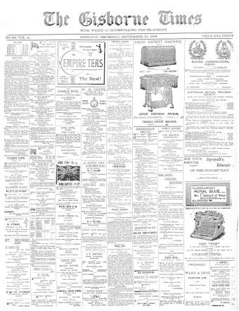 - ARTICLEThe Gisborne Times PUBLISHED EVERY MORNING. GISBORNE, SEPTEMBER 10, 1903.