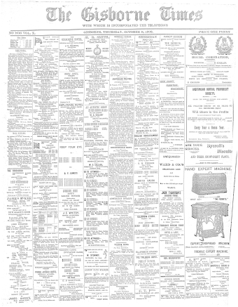 - ARTICLEThe Gisborne Times. PUBLISHED EVERY MORNING. GISBORNE, OCTOBER 8, 1903.