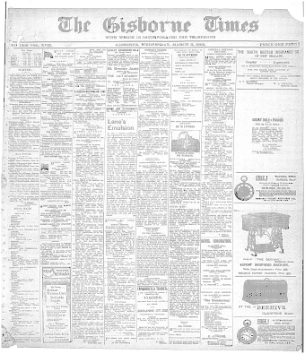 - ARTICLEThe Gisborne Times PUBLISHED EVERY MORNING. GISBORNE, MARCH 8, 1905.