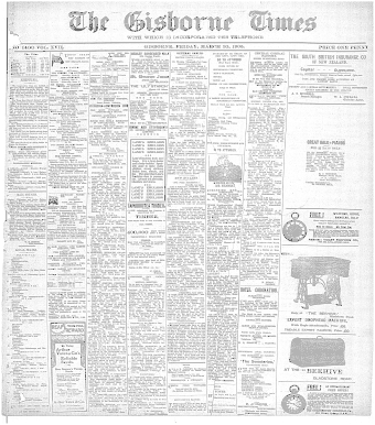 - ARTICLEThe Gisborne Times PUBLISHED EVERY MORNING. GISBORNE, MARCH 10, 1905.