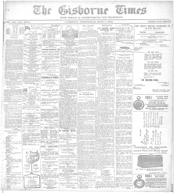 - ARTICLEThe Gisborne Times PUBLISHED EVERY MORNING. GISBORNE, JUNE 7, 1905.