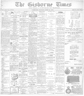 - ARTICLEThe Gisborne Times PUBLISHED EVERY MORNING. GISBORNE, JUNE 12, 1905.