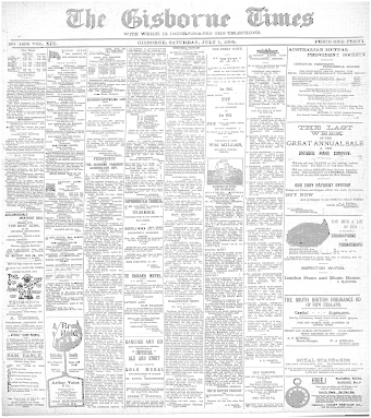- ARTICLEThe Gisborne Times PUBLISHED EVERY MORNING GISBORNE, JULY 1, 1905.