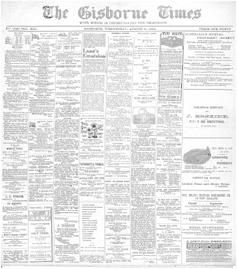 - ARTICLEThe Gisborne Times PUBLISHED EVERY MORNING. GISBORNE, AUG. 9, 1905. THE FISHER FIASCO.