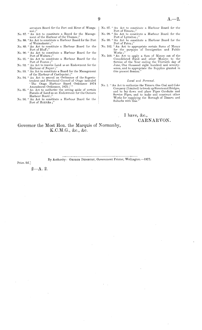 By Authority : George Didsbuby, Government Printer, Wellington. —1877. Price. 9d.] 2—A. 2.