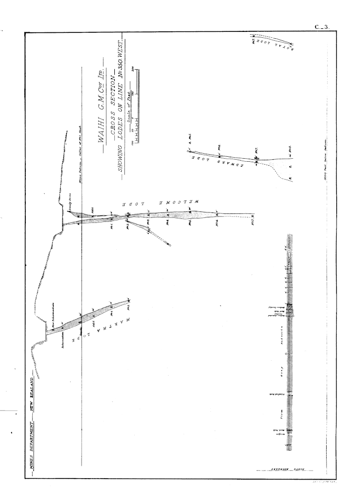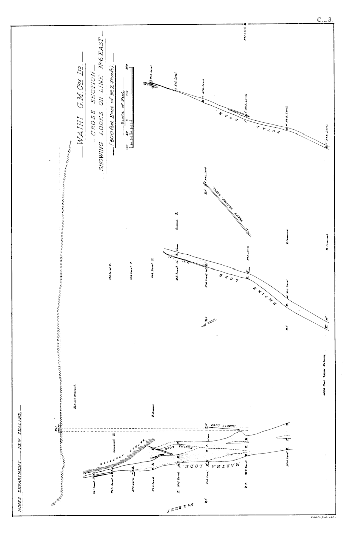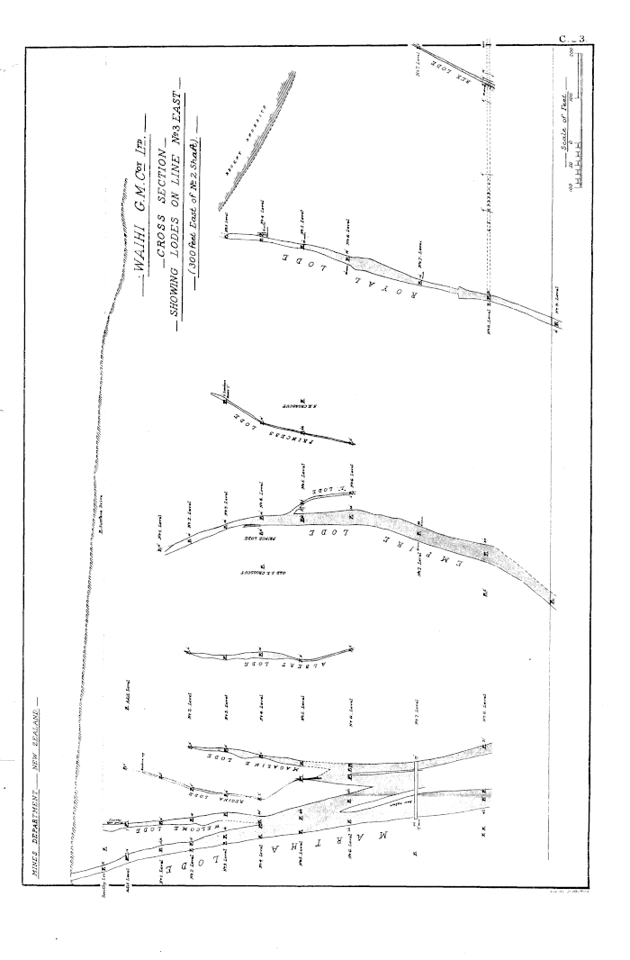 WAIHI G. M. Coy Ltd. CROSS SECTION SHOWING LODES ON LINE No 3 EAST