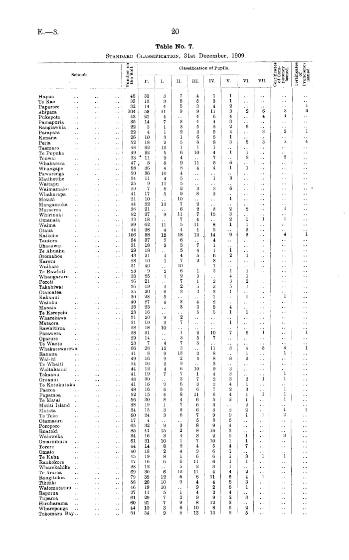 Table No. 7—continued. Standard Classification, 31st December, 1909— continued.