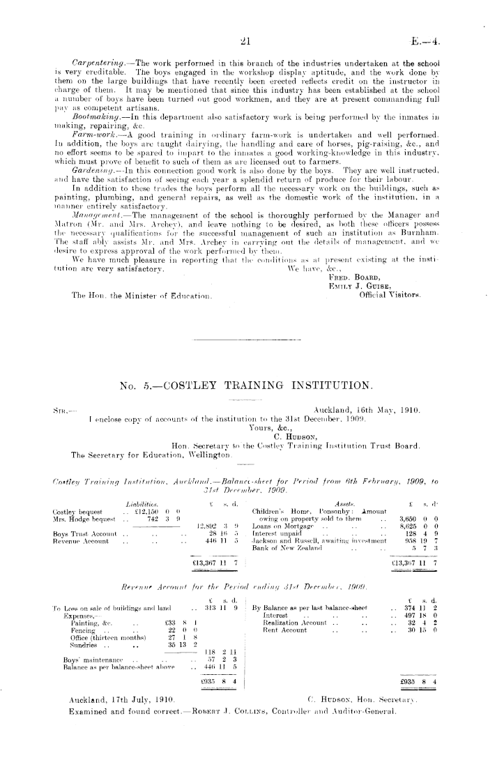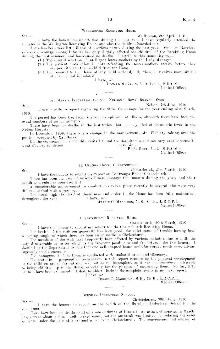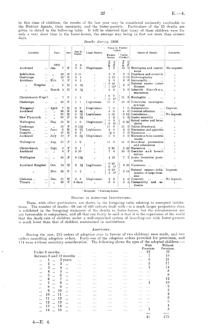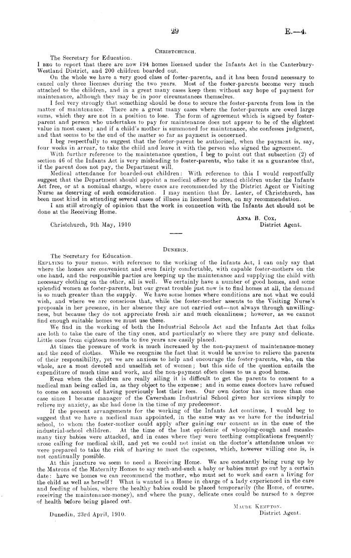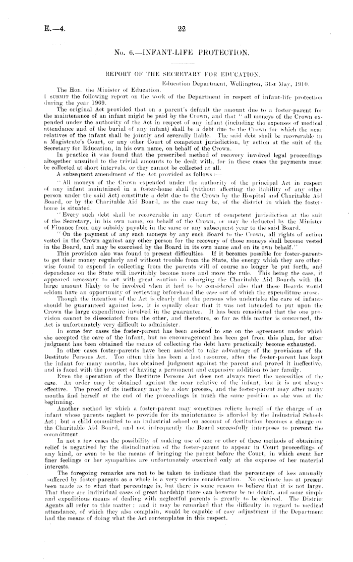 EDUCATION: SPECIAL SCHOOLS, AND INFANT LIFE PROTECTION. [In continuation of E.-4, 1909.], Appendix to the Journals of the House of Representatives, 1910 Session I, E-04