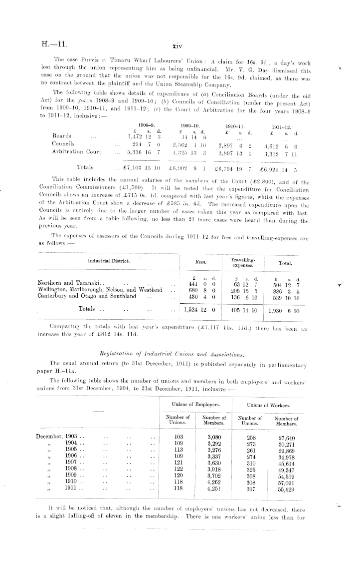 Comparing the totals with last year's expenditure (£1,117 lis. lid.) there has been an increase this year of £812 14s. lid. Registration of Industrial Unions and Associations. The usual annual return (to 31st December, 1911) is published separately in parliamentary paper H.-11a. The following table shows the number of unions and member's in both employers' and workers' unions from 31st December, 1904, to 31st December, 1911, inclusive:—