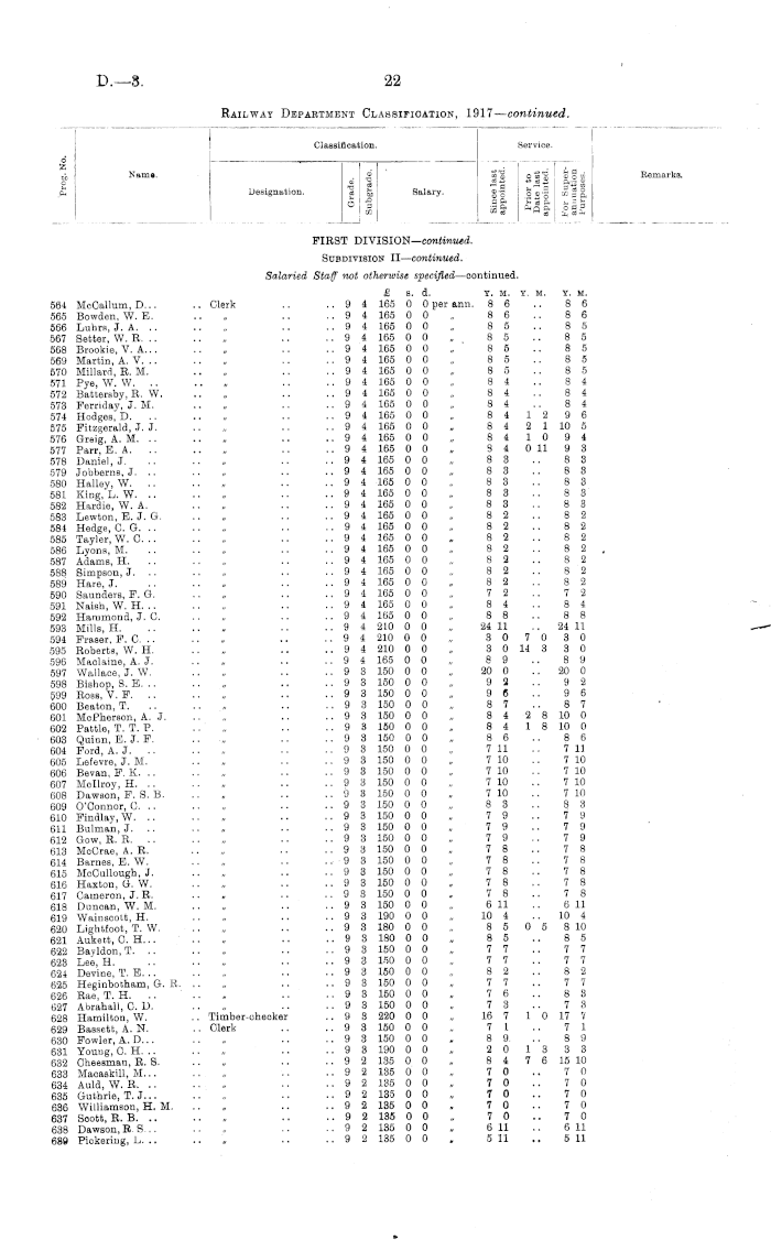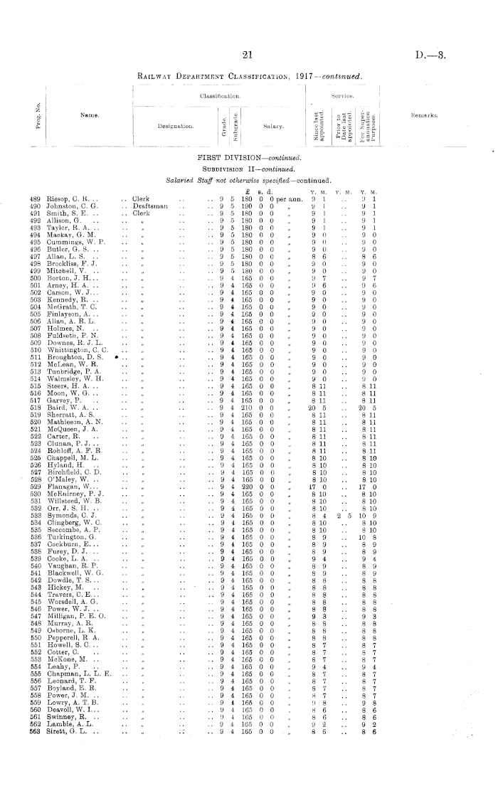 Railway Department Classification, 1917—continued.