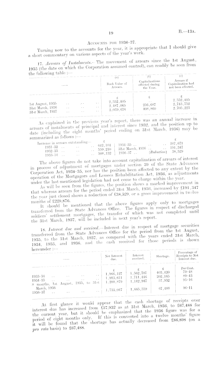 STATE ADVANCES CORPORATION OF NEW ZEALAND., Appendix to the Journals of the House of Representatives, 1937 Session I, B-13a