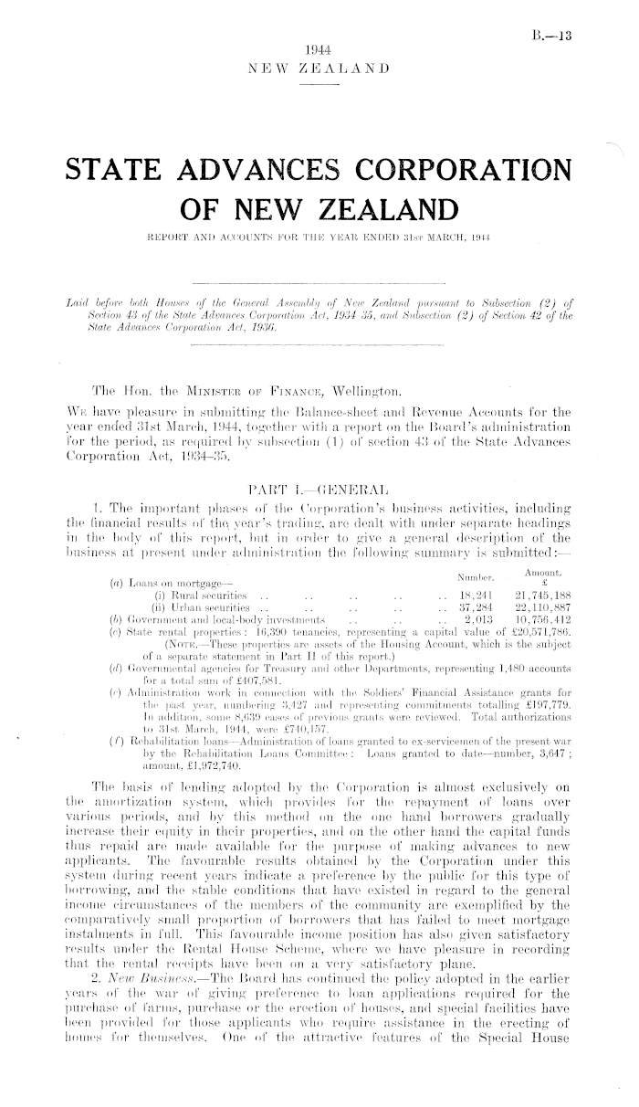 STATE ADVANCES CORPORATION OF NEW ZEALAND REPORT AND ACCOUNTS FOR THE YEAR ENDED 31st MARCH, 1944, Appendix to the Journals of the House of Representatives, 1944 Session I, B-13
