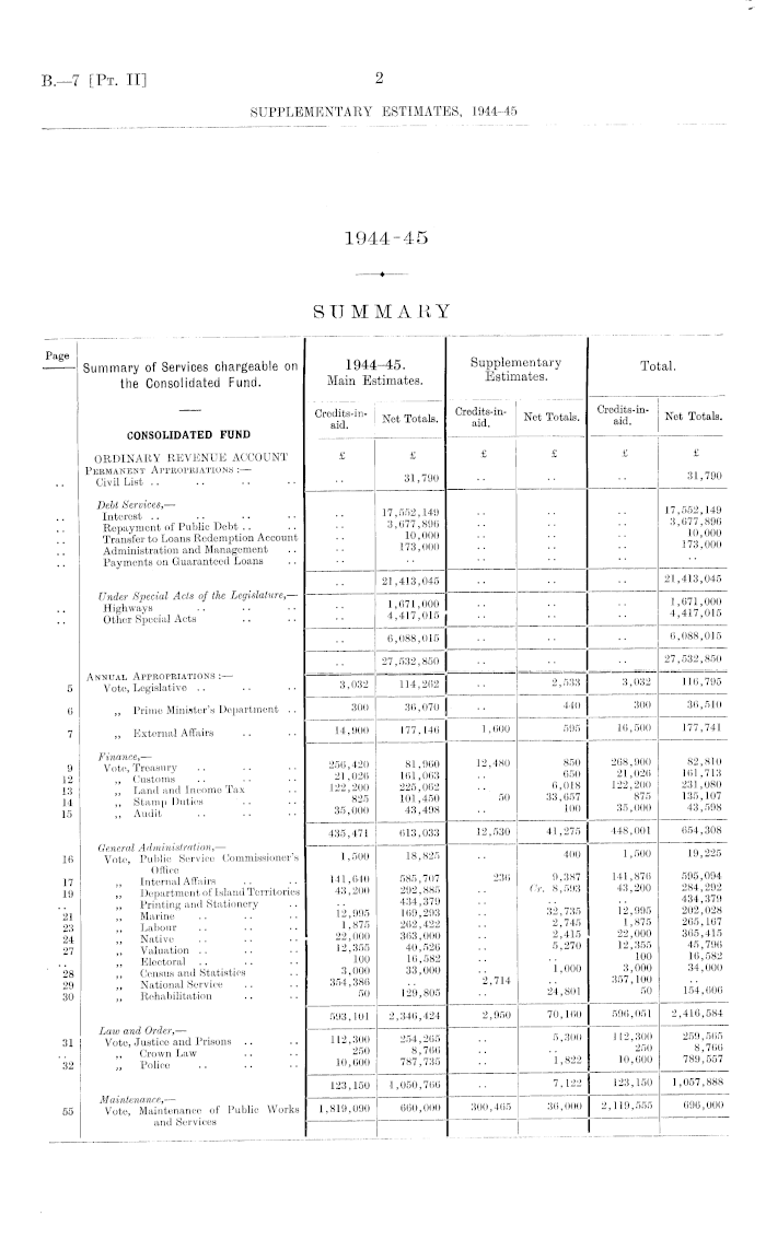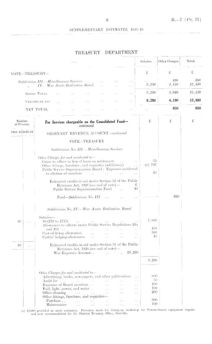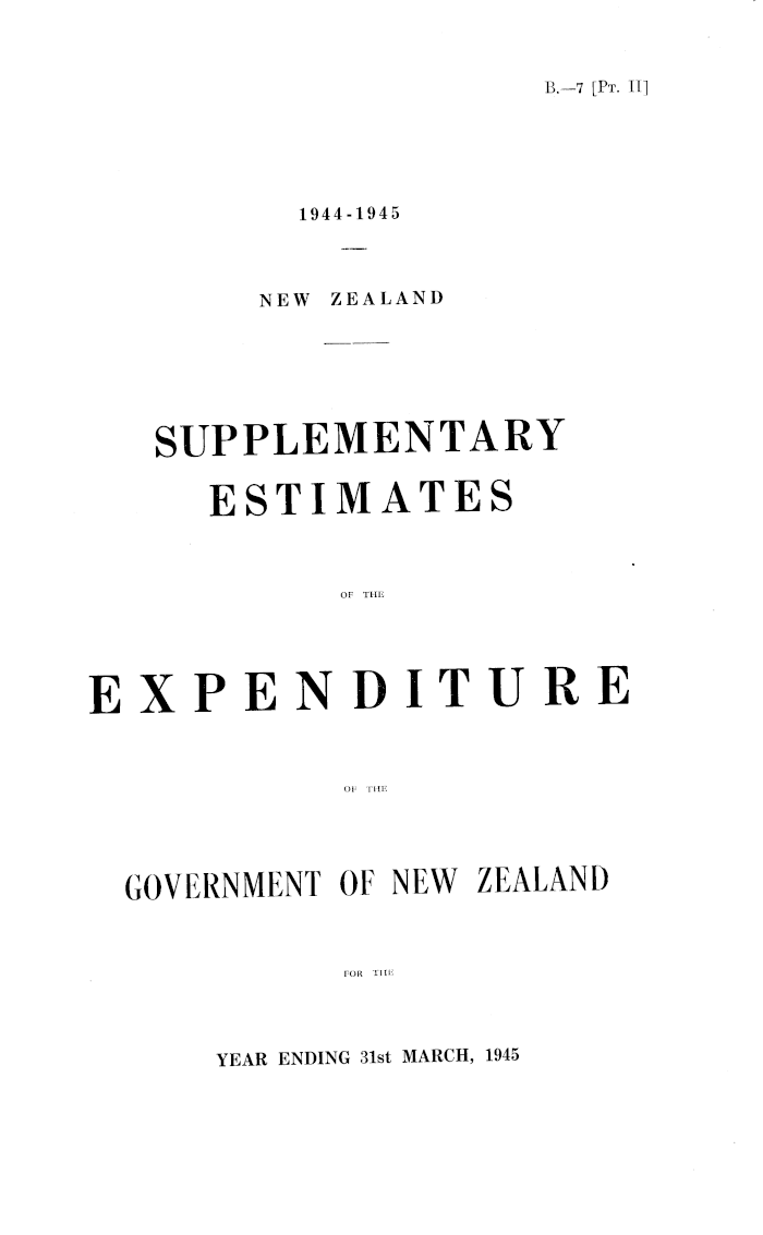 SUPPLEMENTARY ESTIMATES OF THE EXPENDITURE OF THE GOVERNMENT OF NEW ZEALAND FOR THE YEAR ENDING 31st MARCH, 1945, Appendix to the Journals of the House of Representatives, 1944 Session I, B-07-part02