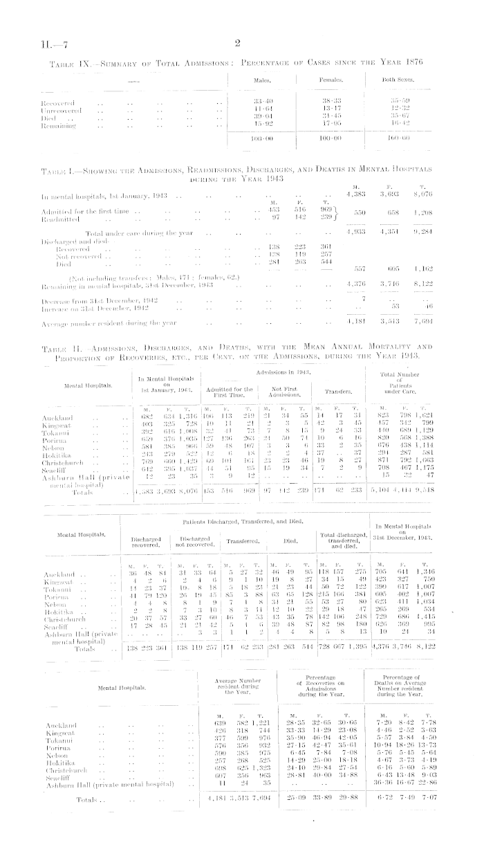 2,585MENTAL HOSPITALS OF THE DOMINION (REPORT ON) FOR 1943 Appendix to the Journals of the House of Representatives, 1944 Session I, H-07