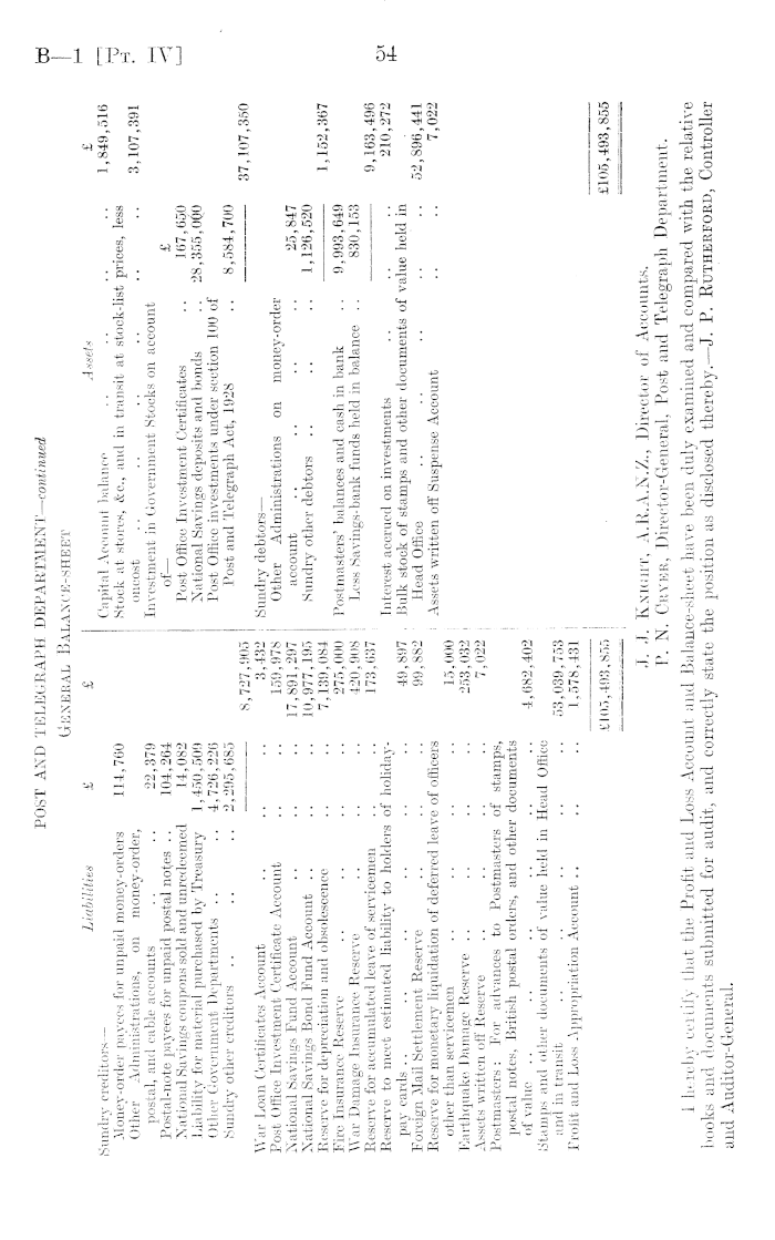 J. W. Scott, A.R.A.N.Z., Chief Accountant, Public Works Department. I hereby certify that the General Balance-sheet has been duly compared with the relative books and documents submitted for audit, and correctly states position as disclosed thereby.— J. P. Rutherford, Controller and Auditor- General.