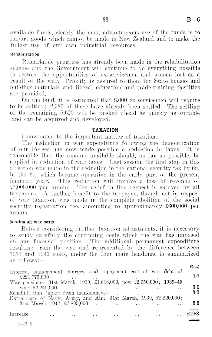 FINANCIAL STATEMENT (In Committee of Ways and Means, 15th August, 1946), Appendix to the Journals of the House of Representatives, 1946 Session I, B-06