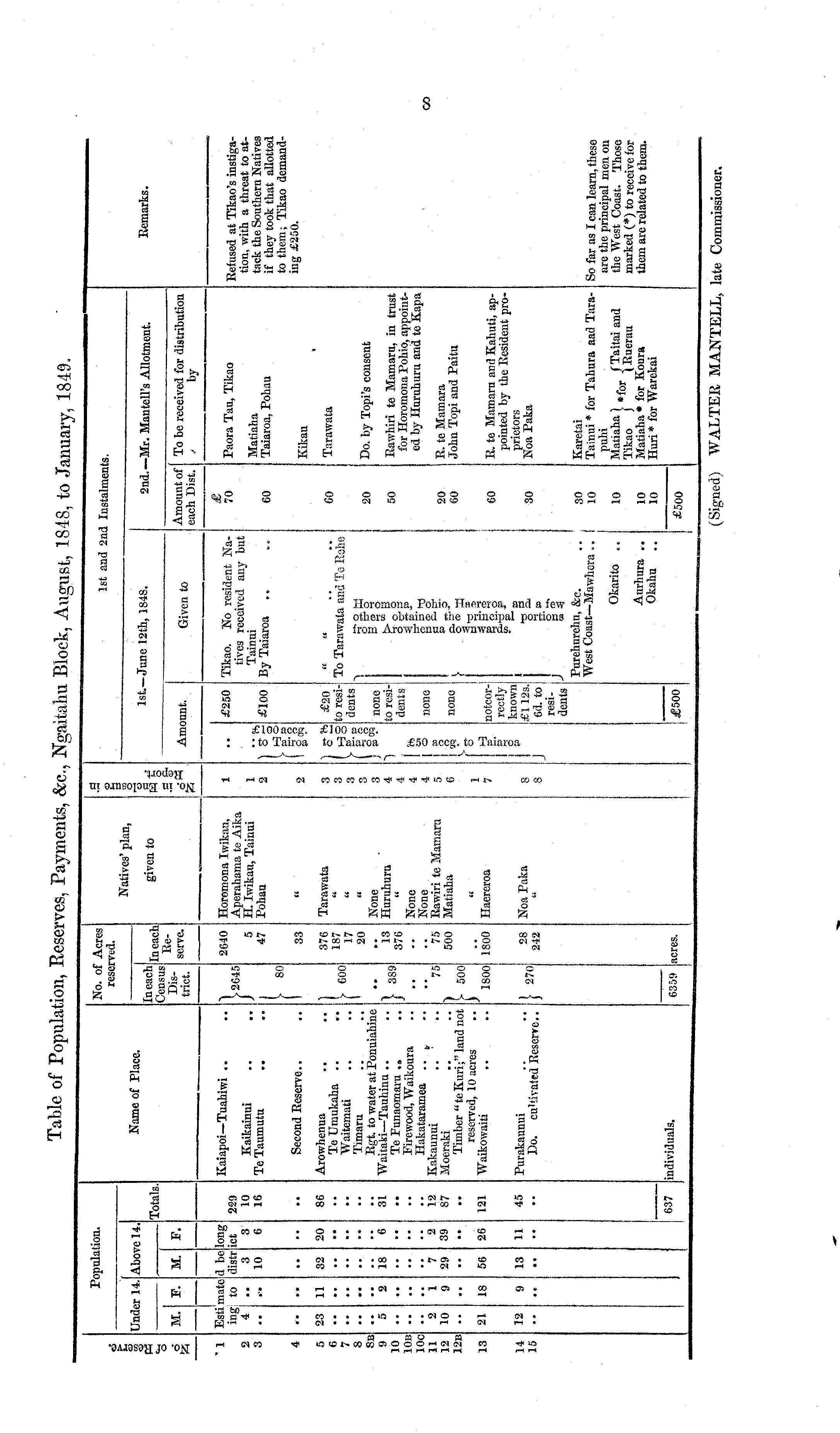 Table of Population, Reserves, Payments, &c., Ngaitahu Block, August, 1848, to January, 1849.