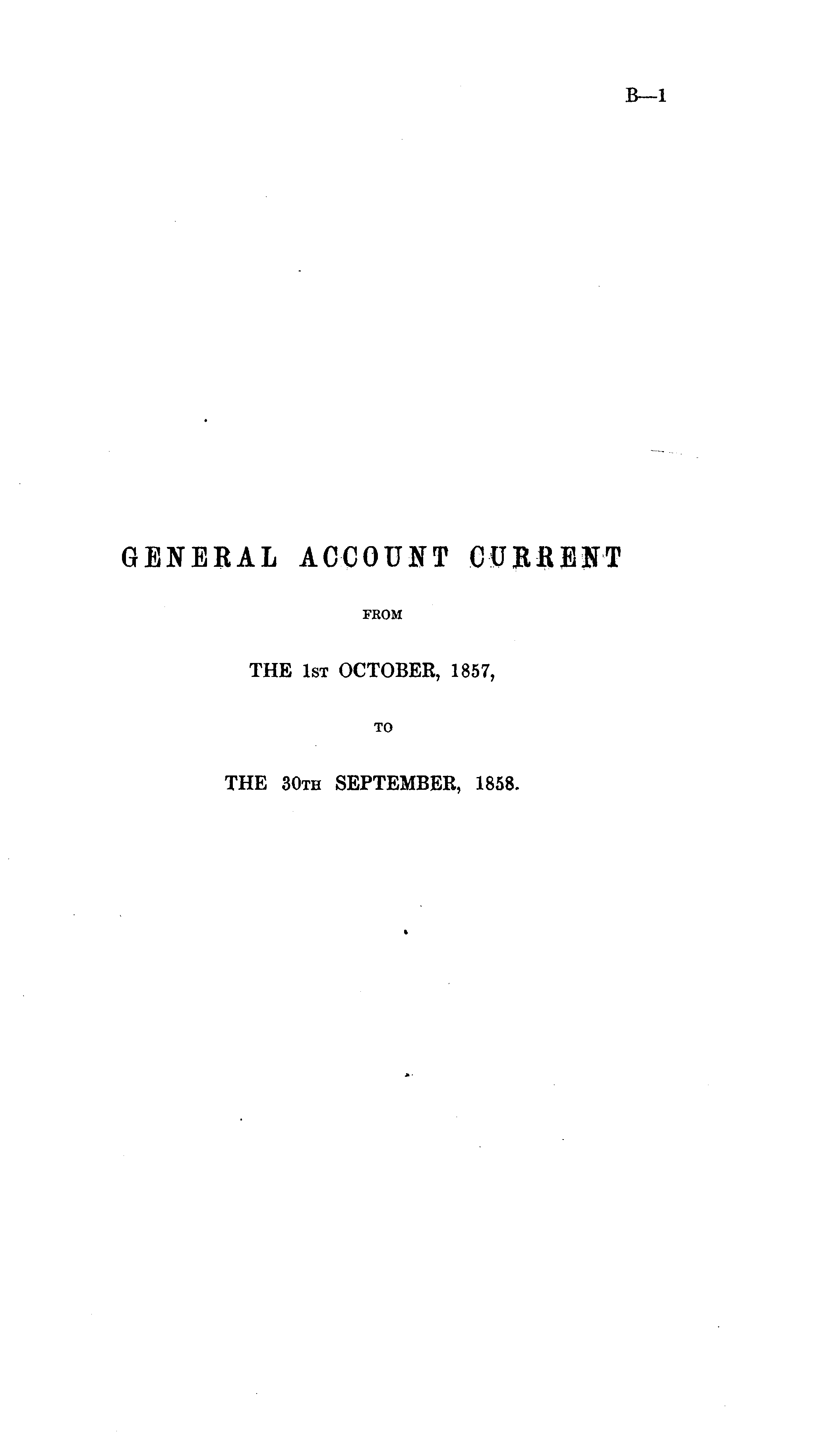 GENERAL ACCOUNT CURRENT FROM THE Ist OCTOBER, 1857, TO THE 30th SEPTEMBER, 1858.