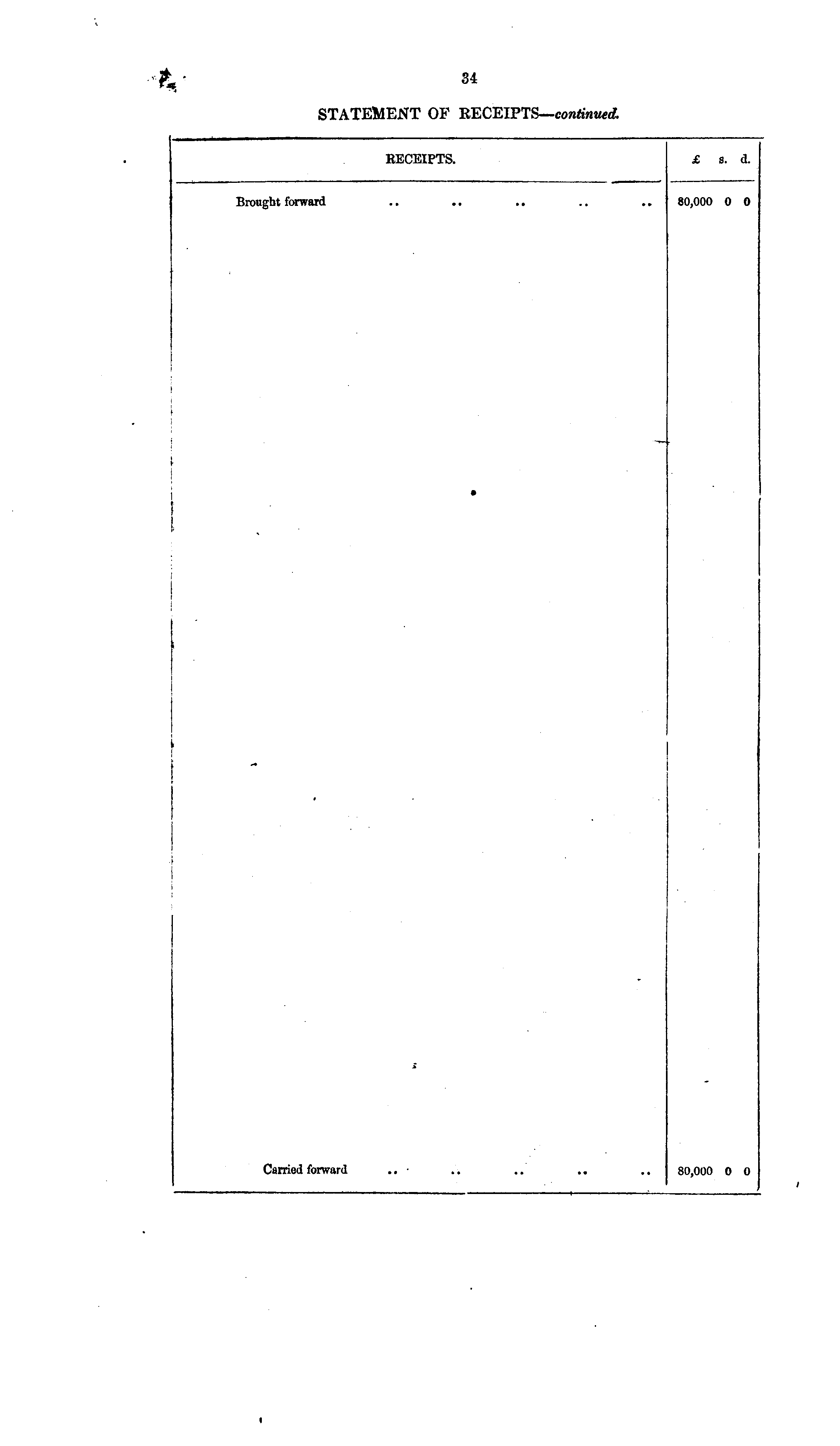 RECEIPTS. £ S. d. Brought forward 80,000 0 0 • 80,000 0 0 Carried forward • •