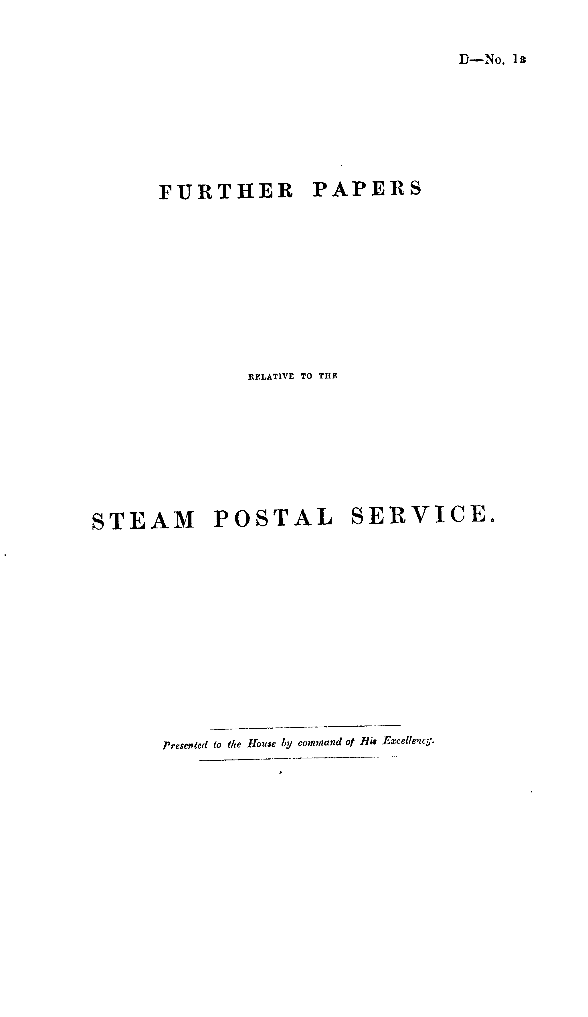 FURTHER PAPERS RELATIVE TO THE STEAM POSTAL SERVICE.