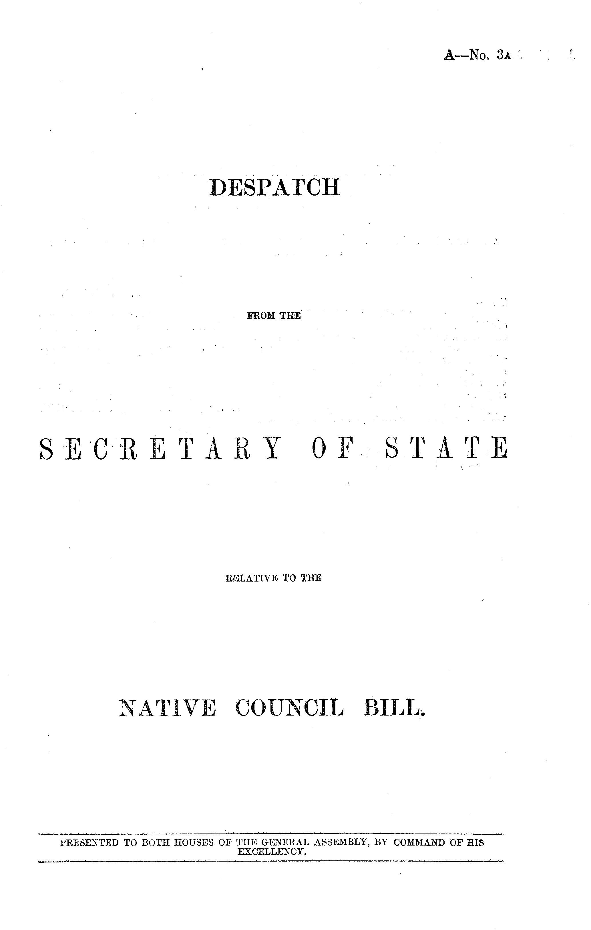 DESPATCH FROM THE SECRETARY OF STATE RELATIVE TO THE NATIVE COUNCIL BILL.