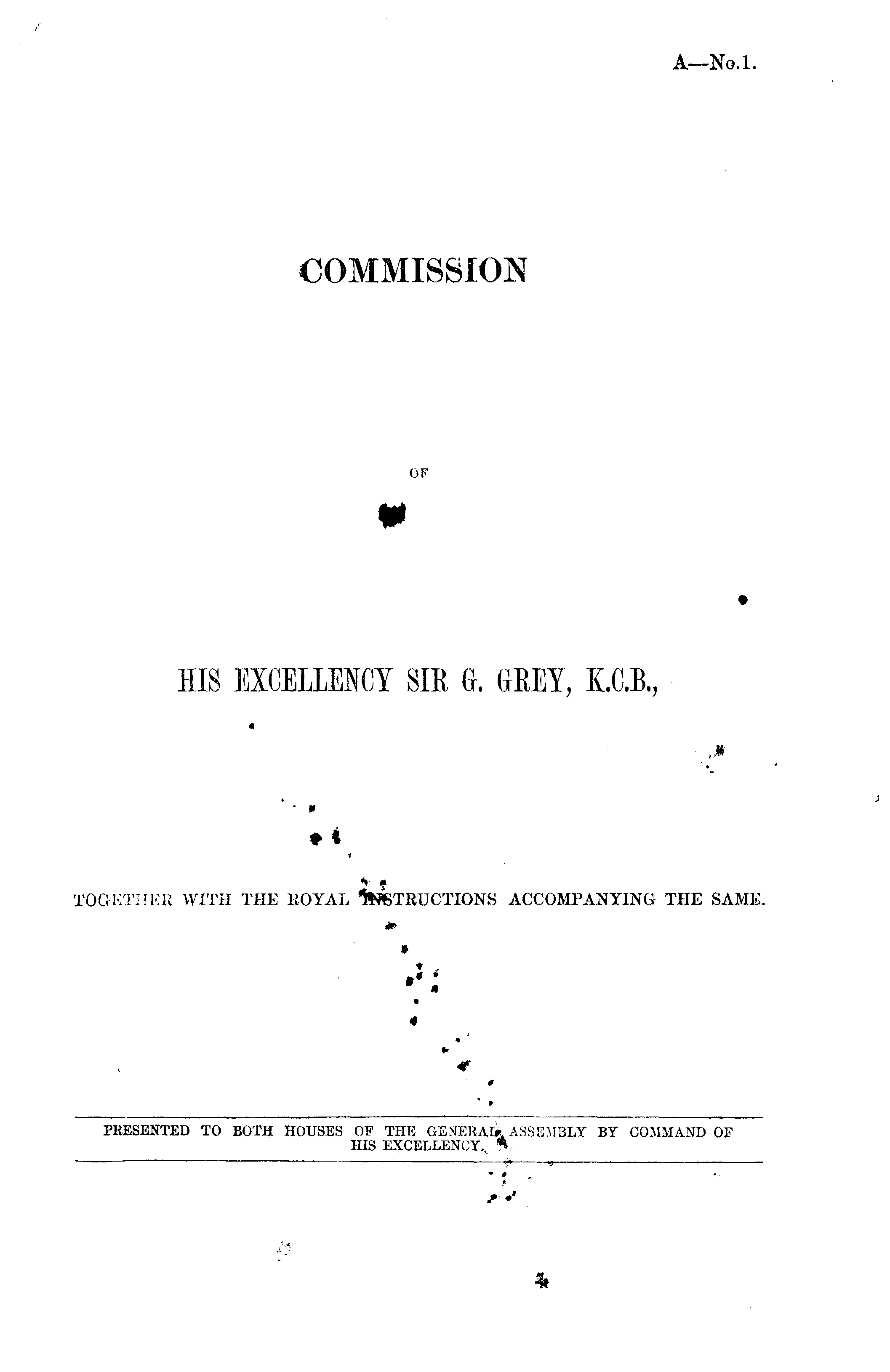 COMMISSION OF HIS EXCELLENCY SIR G. GREY, K.C.B., TOGETHER WITH THE ROYAL INSTRUCTIONS ACCOMPANYING THE SAME.