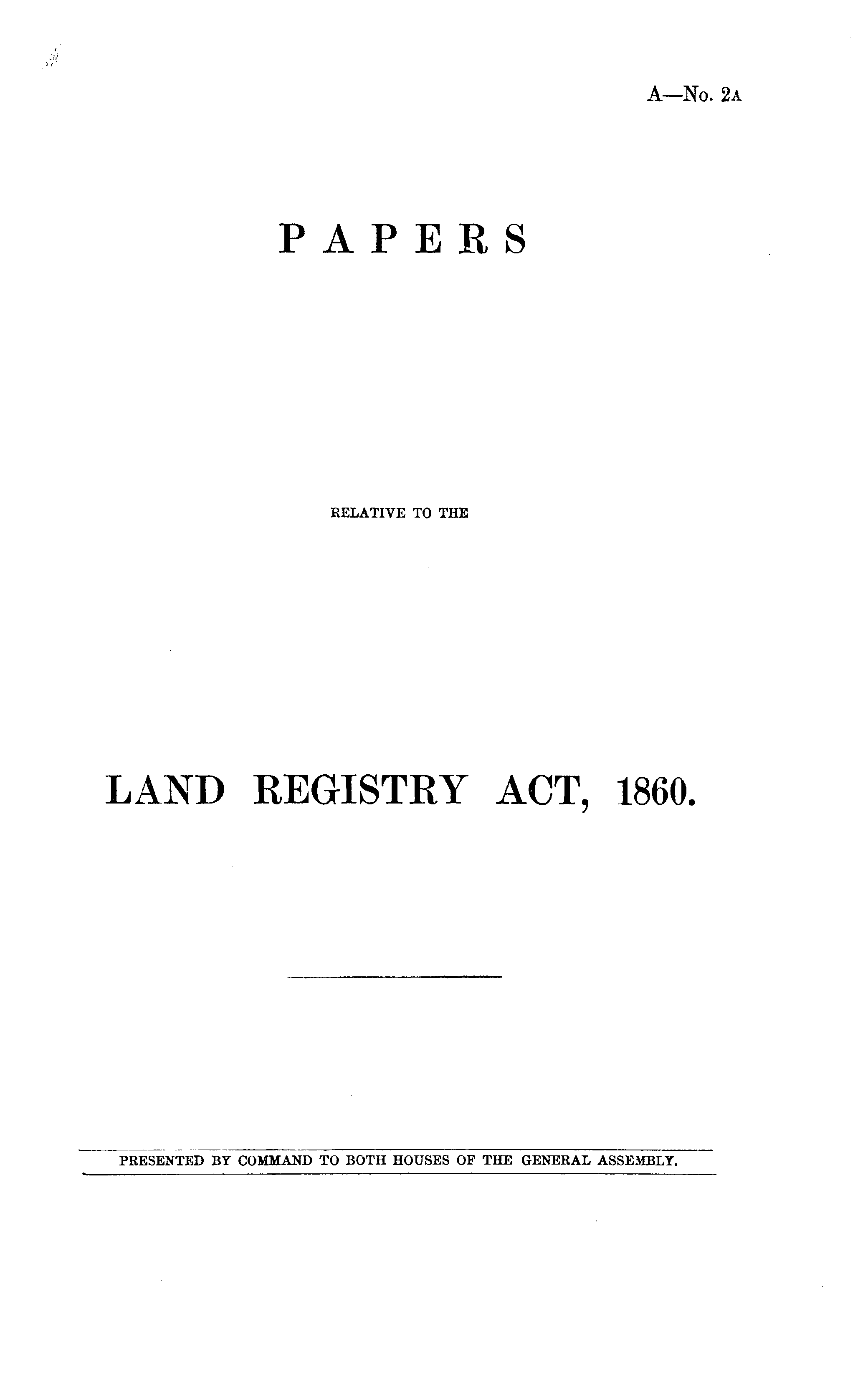 PAPERS RELATIVE TO THE LAND REGISTRY ACT, 1860.