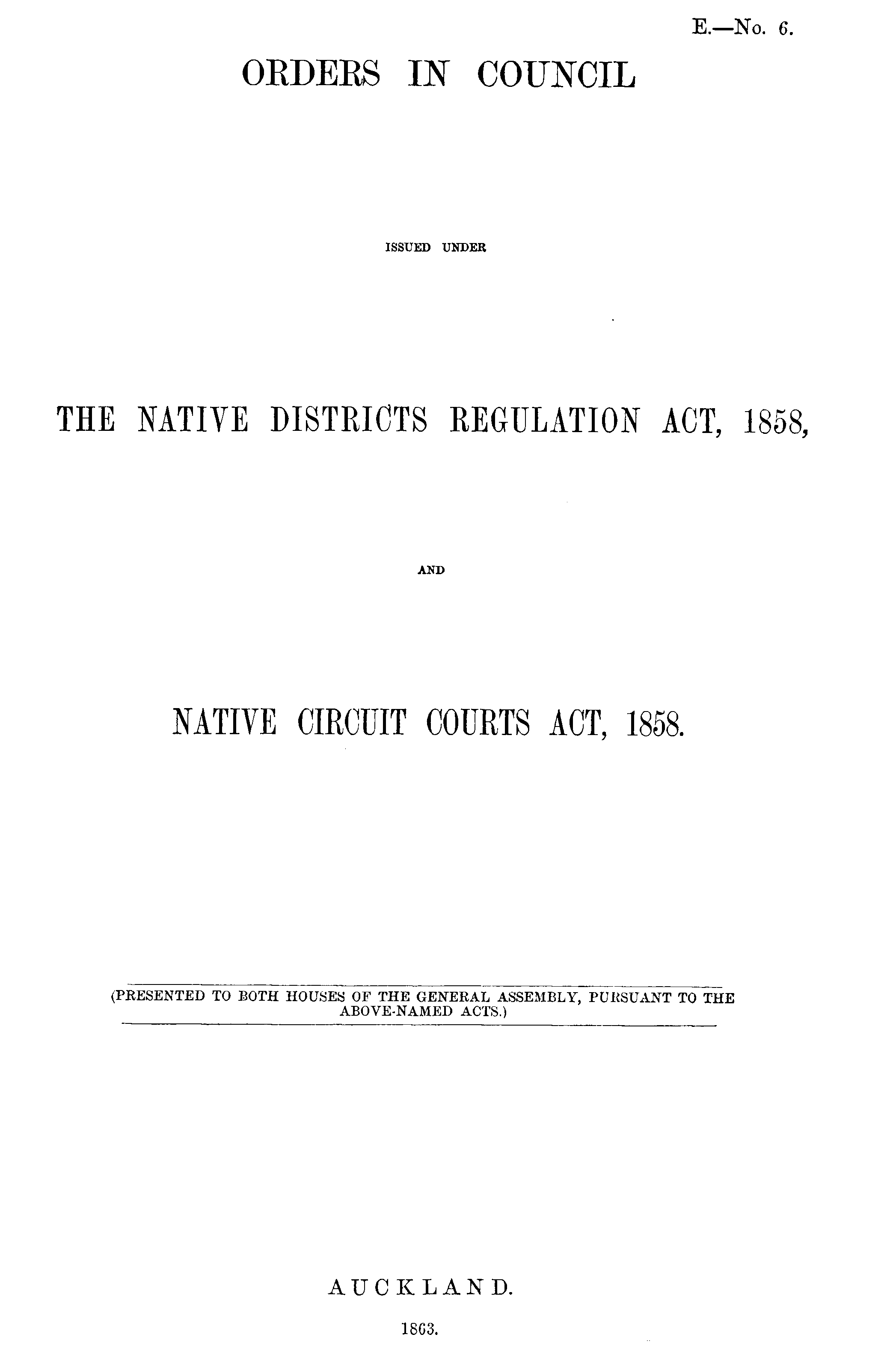 ORDERS IN COUNCIL ISSUED UNDER THE NATIVE DISTRICTS REGULATION ACT, 1858, AND NATIVE CIRCUIT COURTS ACT, 1858.