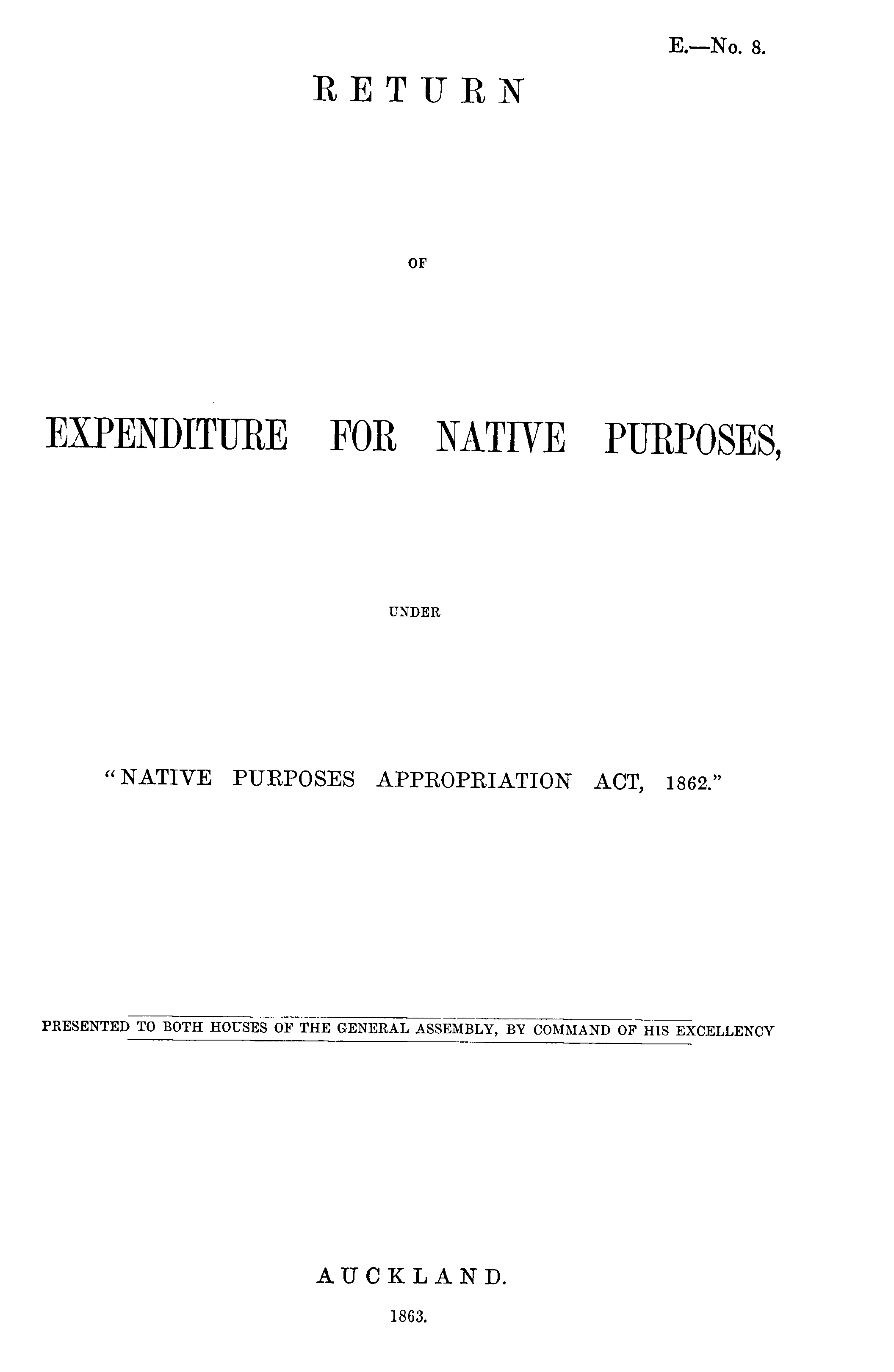 RETURN OF EXPENDITURE FOR NATIVE PURPOSES, UNDER "NATIVE PURPOSES APPROPRIATION ACT, 1862."