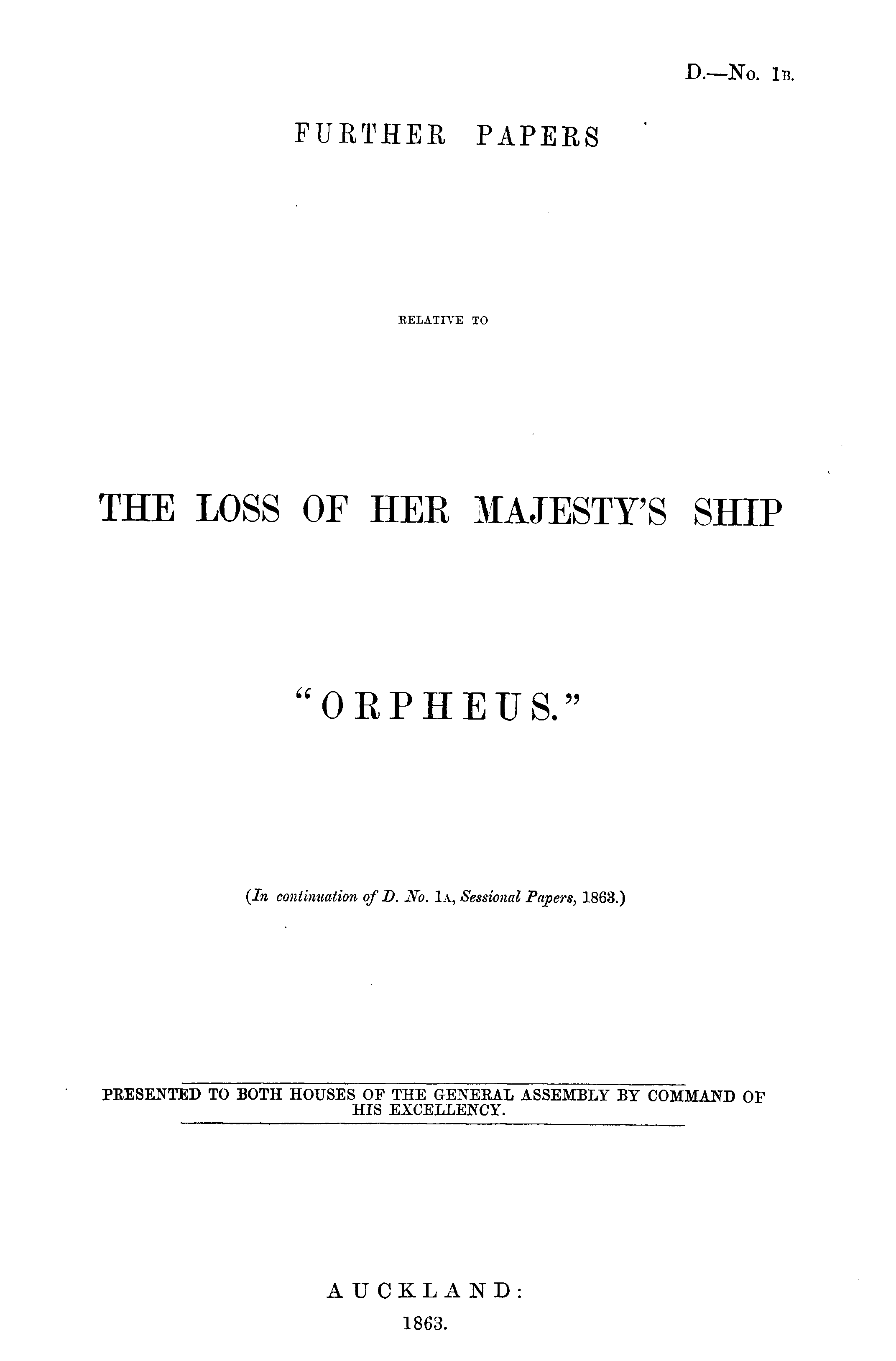 FURTHER PAPERS RELATIVE TO THE LOSS OF HER MAJESTY'S SHIP "ORPHEUS."