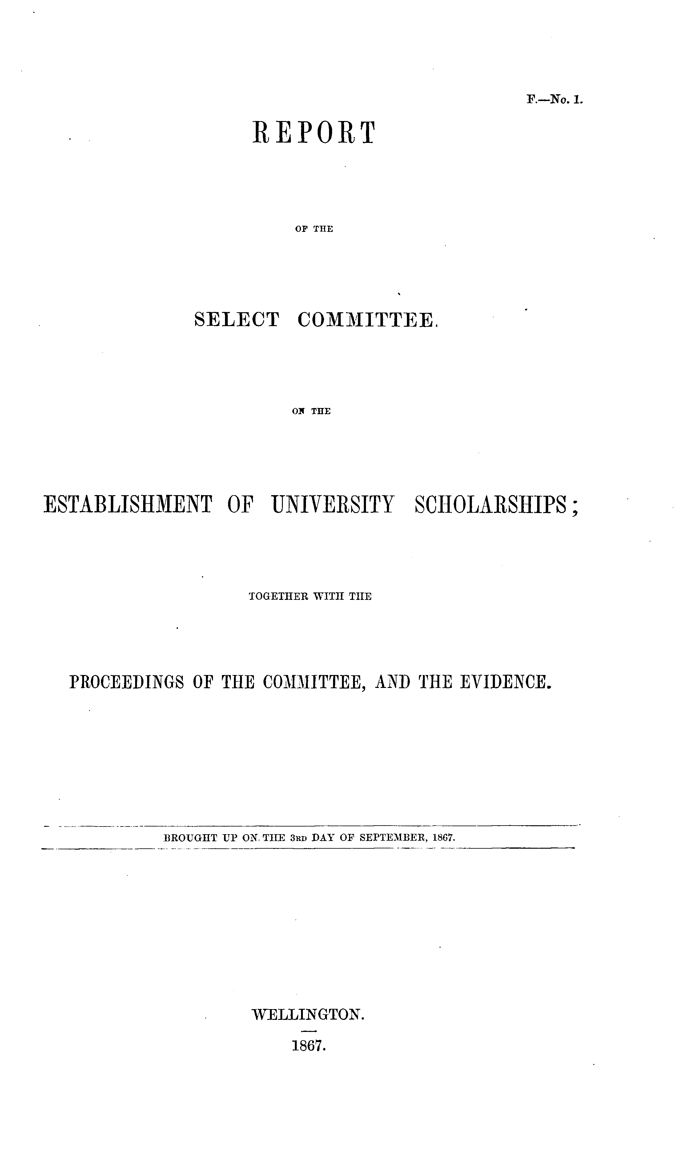 REPORT OF THE SELECT COMMITTEE ON THE ESTABLISHMENT OF UNIVERSITY SCHOLARSHIPS; TOGETHER WITH THE PROCEEDINGS OF THE COMMITTEE, AND THE EVIDENCE.