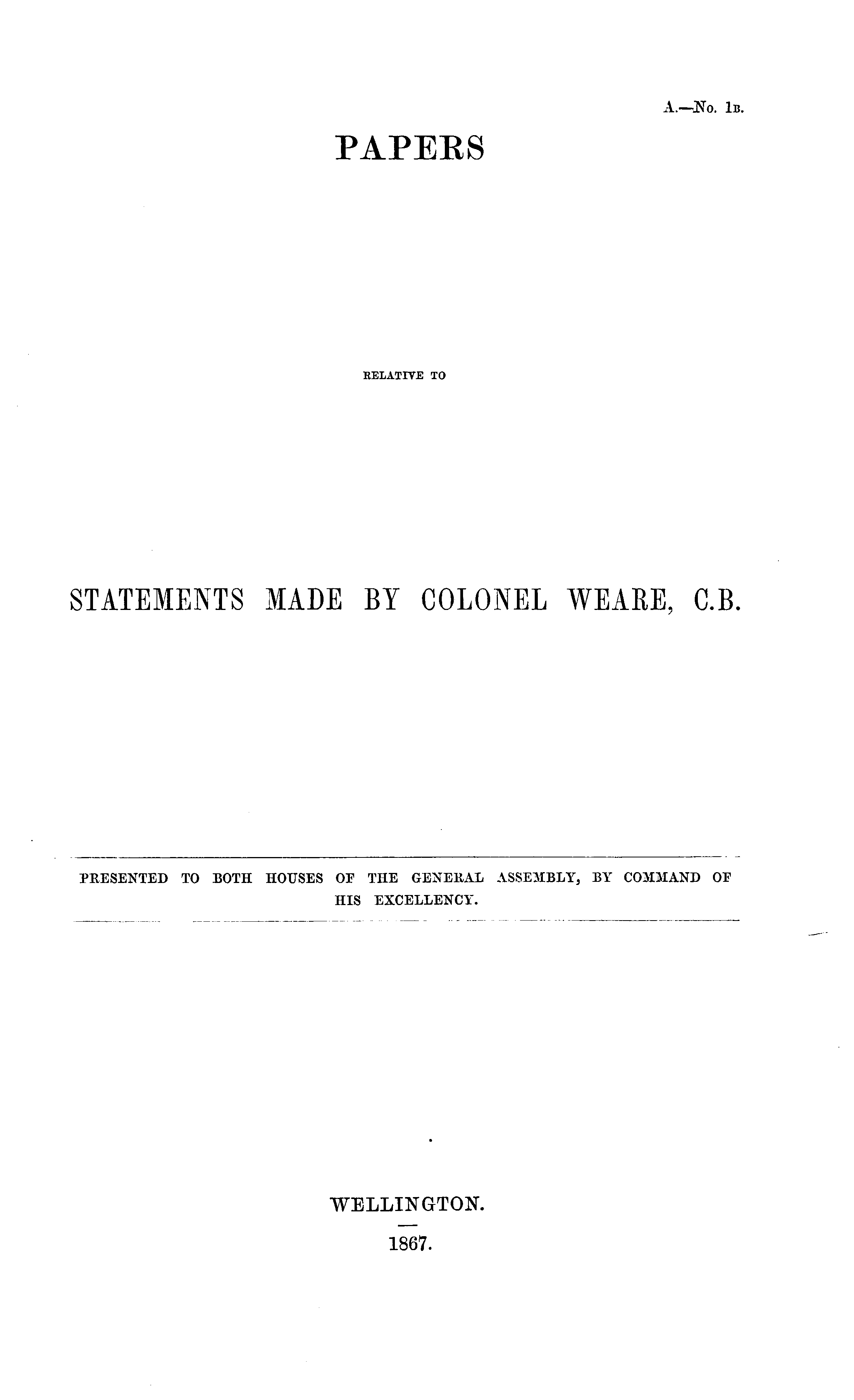 PAPERS RELATIVE TO STATEMENTS MADE BY COLONEL WEARE, C.B.