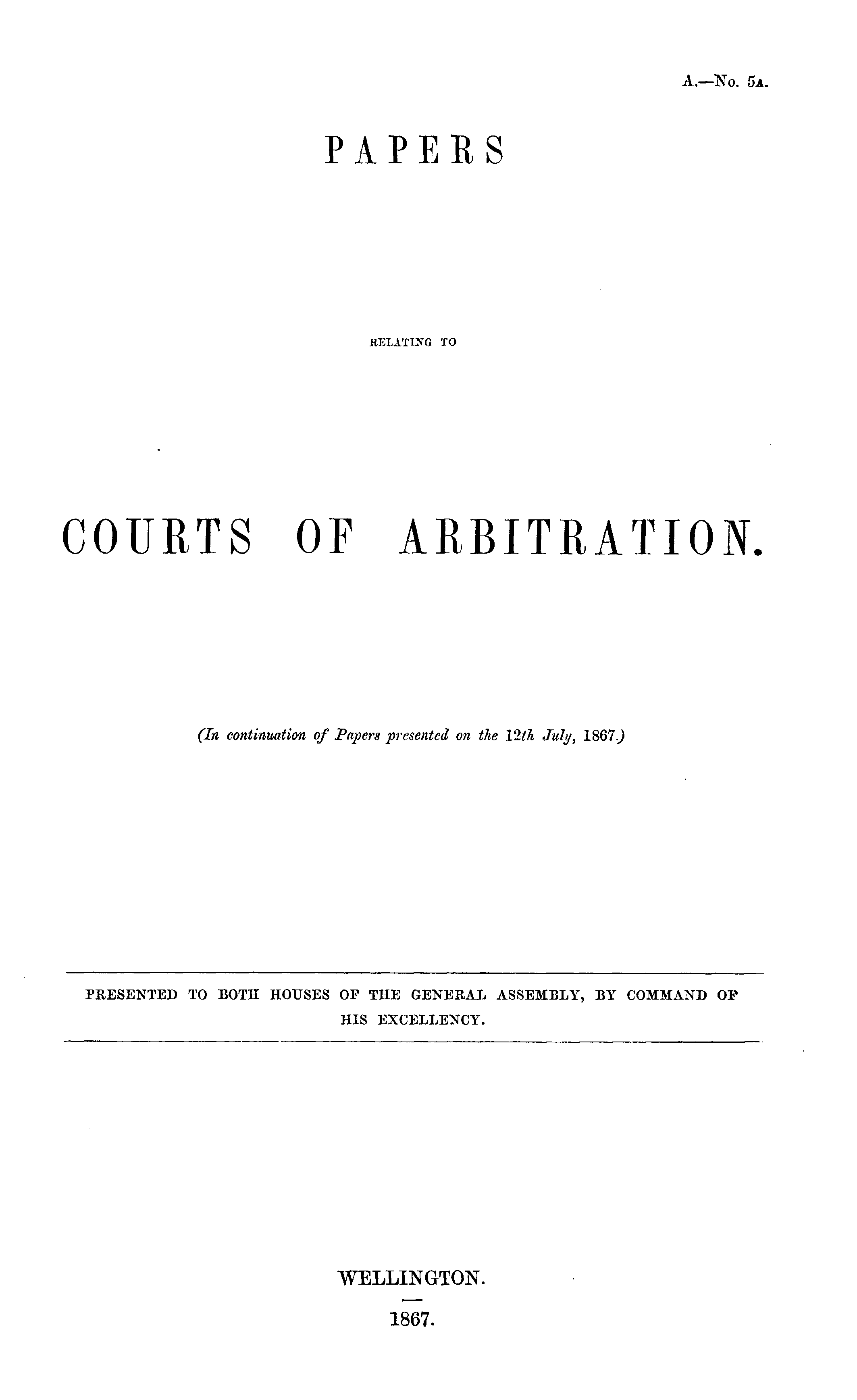 PAPERS RELATING TO COURTS OF ARBITRATION.