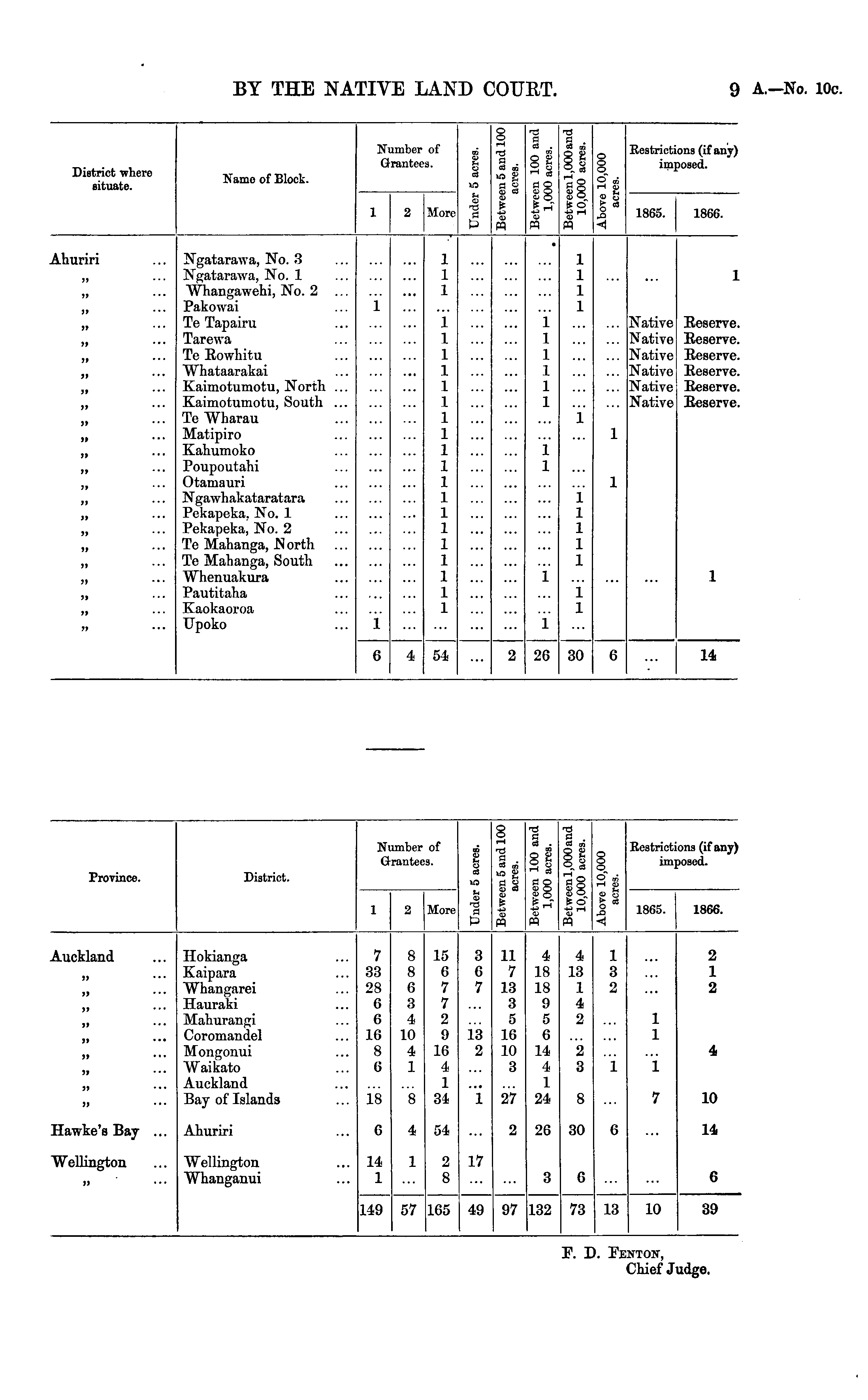 District where situate. Jfamo of Block. Number of Grantees. | — 3 t-H » i I S 03 . il a o Jr-T 1II f§ to o" 4 V Eestrictions (if any) imposed. 1 2 More 1865. 1866. 1 1 1 • Ahuriri ?» )» n j» j» i> j» n j» >> M Ngatarawa, No. 3 Ngatarawa, No. 1 Whangawehi, No. 2 Pakowai Te Tajjairu Tarewa TeRowhitu Whataarakai Kaimotumotu, North ... Kaimotumotu, South ... TeWharau Matipiro Kahumoko Poupoutahi Otamauri Ngawhakataratara Pckapeka, No. 1 Pekapeka, No. 2 Te Mahanga, North Te Mahanga, South Whenuakura Pautitaha Kaokaoroa Upoko i 1 1 1 1 1 1 1 1 1 1 1 1 1 1 1 1 1 1 1 1 1 1 1 1 1 1 1 1 i l 1 1 l Native Native Native Native Native Native 1 Reserve. Reserve. Reserve. Reserve. Reserve. Reserve. »l >t l> >» II 1 1 1 1 1 » J» J» 1 )t )> i l >> 1 i J> 6 4 54 20 80 14 Province. District. Number of Grrantees. I t 3 U 8 S „; •» Si I 1. C3 O o o 2 0 9. a |i feo Restrictions (if any) imposed. 1 2 More 1865. 1866. Auckland Hokianga Kaipara Whangarei Hauraki Mahurangi Coromandel Mongonui Waikato Auckland Bay of Islands 7 33 28 C 6 16 8 G 8 8 0 8 4 10 4 1 15 6 7 7 2 9 16 4 1 34 3 G 7 11 7 18 3 5 L8 10 3 4 18 IS 9 5 6 14 4 1 21 4 18 1 4 2 1 3 2 I 2 3) It II 1 1 ,, it 18 2 2 3 4 ,y i i » 3) 18 8 i 27 8 7 10 ,, Hawke's Bay ... Ahuriri G 4 54 2 28 SO 6 11 Wellington Wellington Whanganui 14 1 1 2 8 17 G ? , 149 57 1G5 49 97 132 7:3 18 10 88 P. I. P: "TCOT, Jhief J idge.